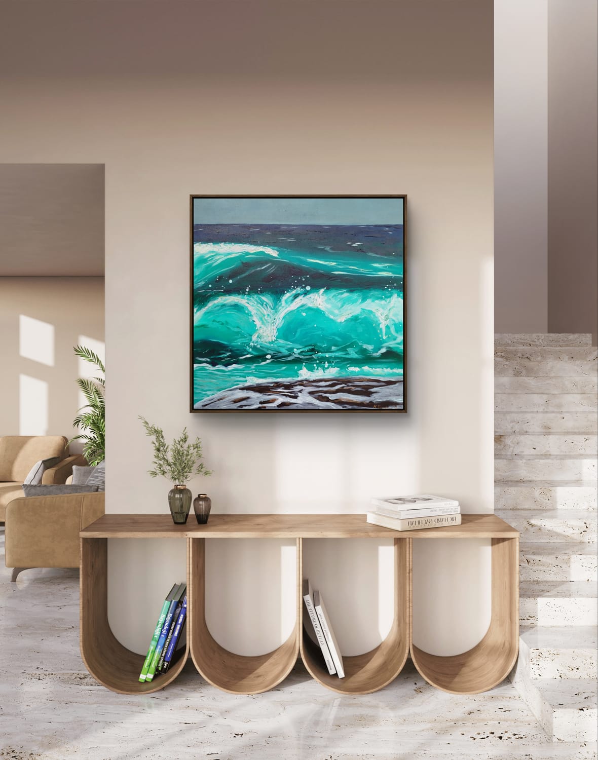 Obra original pintada a mano que transmite calma, luz y conexión con el mar.